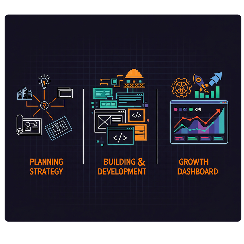 We follow a simple yet powerful three-step process to ensure every project is a success, from initial strategy to final launch.